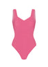 Kostium Ibiza Pink to nasz nowy jednoczęściowy strój kąpielowy z dziewczęco różowego materiału typu "gofr". Ibiza to kostium, który dzięki wszytej dodatkowej podszewce delikatnie zbierze ciało i podkreśli kształty. Dodatkowy komfort użytkowania zapewnią szerokie ramiączka.