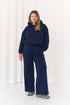 Ich luźny krój z szerokimi nogawkami gwarantuje swobodę ruchów, a klasyczny granatowy kolor sprawia, że pasują do wielu casualowych stylizacji. Dresy świetnie sprawdzą się zarówno w domowych warunkach, jak i podczas codziennych wyjść.