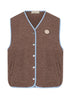 Kamizelka Merino Coco w kolorze brązowym z niebieskimi akcentami to niezwykle urokliwy dodatek, który łączy w sobie komfort i styl, stając się nieodłącznym elementem każdej garderoby.