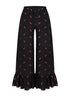 Ozdobione haftowanymi kontrastowymi papryczkami przyciągają wzrok i dodają całości dziewczęcego uroku. Luźna nogawka zakończona efektowną falbaną nie tylko pięknie się układa, ale też dodaje swobodnego, romantycznego charakteru. Wysoki stan i elastyczna talia dbają o komfort noszenia i świetne dopasowanie – niezależnie od sylwetki.