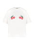 Biały T-shirt Cherry to kwintesencja letniego stylu z nutą zmysłowości i humoru. Dwie urocze wisienki nadrukowane za pomocą metody sitodruku na wysokości piersi przyciągają spojrzenia i nadają całości kobiecego charakteru. To detal, który mówi więcej niż tysiąc słów – subtelnie, ale wyraźnie podkreśla Twoją pewność siebie i dystans do świata.