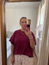 Uszyty z miękkiej, przewiewnej bawełny, zapewnia komfort nawet w upalne dni. Delikatnie opadające rękawy i luźniejsza forma sprawiają, że top subtelnie otula sylwetkę, podkreślając jej lekkość bez opinania ciała. To model, który możesz nosić bez końca – na spacer, na jogę, na kawę z przyjaciółką albo po prostu po domu.